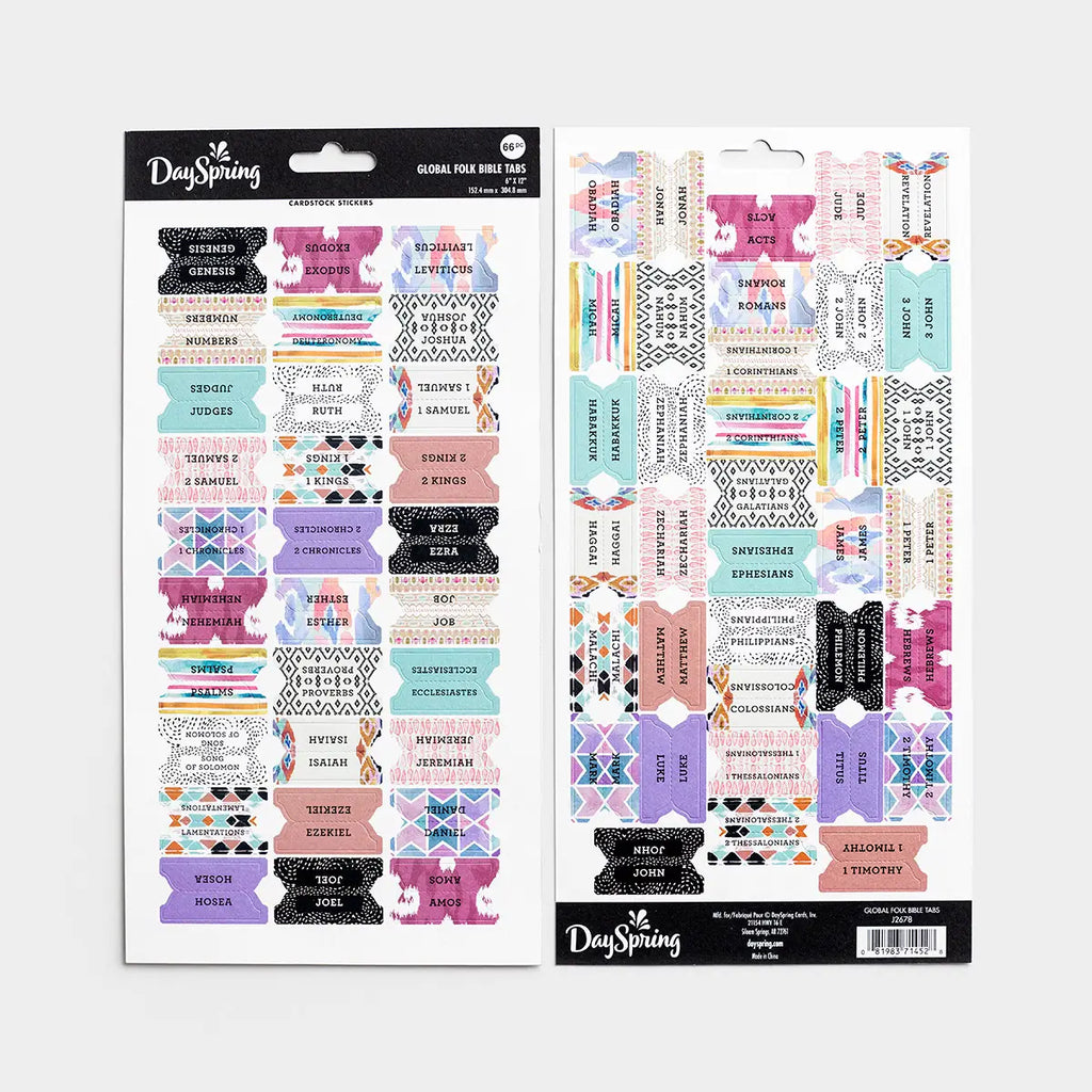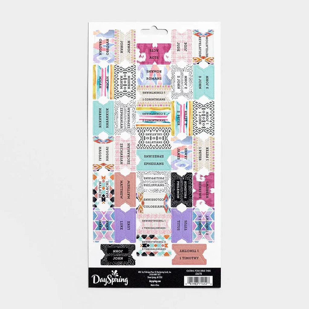 Great for getting where you want to go! Mark the books of your Bible (Old Testament and New Testament) with these fun, colorful patterned Bible Tab Stickers and enjoy more time reading, less time searching!