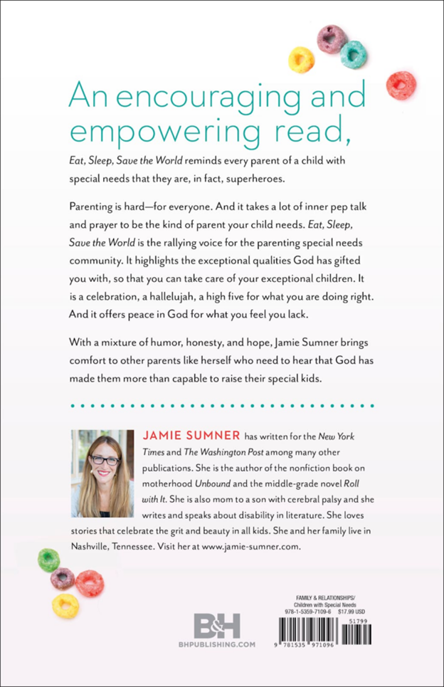 Career author and mother to a son with cerebral palsy, Jamie Sumner writes an encouraging read for the moms and dads out there who are parenting special needs kids, giving them the laughter, support, understanding, and spiritual boost they need to keep being the superheroes they already are to their kids.