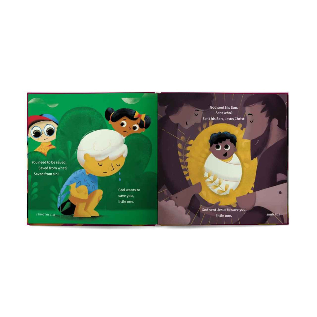 Toddlers are not too young to learn the gospel! Help them discover how and why Jesus saves in this hopeful and beautifully illustrated board book. Using simple, easy-to-understand concepts, children's book author Sarah Reju offers a way for parents to teach the good news to children ages one to four.