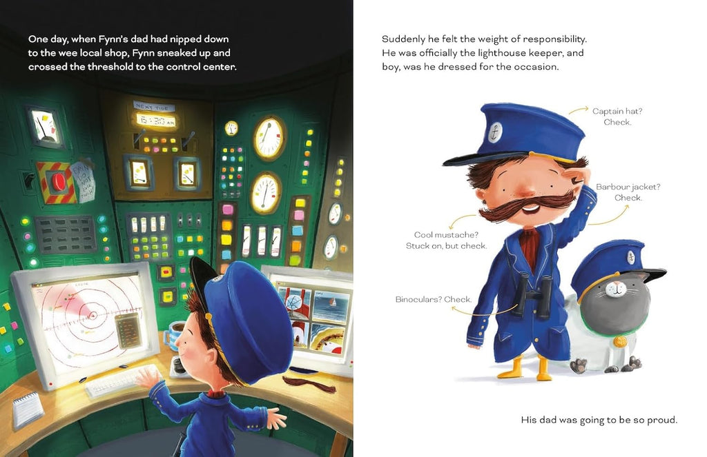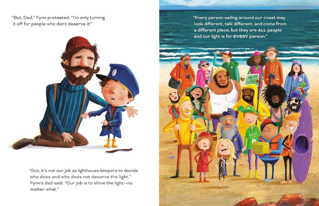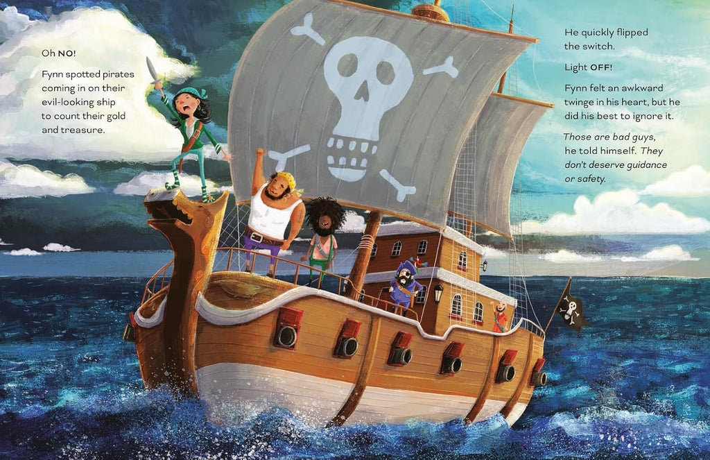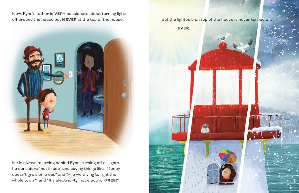 Fynn is an expert on light—after all, he's lived under a giant lightbulb his whole life. Fynn's father never turns off the big switch at the top of their lighthouse, but Fynn is pretty sure he knows a better way to do things. When Dad nips down to the corner store, Fynn seizes his chance to save energy by keeping the light on only for deserving vessels. Fynn's dad will be so proud . . . or will he?
