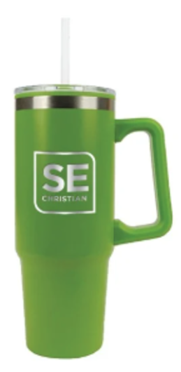 This 30oz Zane vacuum insulated with straw, featuring the SE Christian logo. Available in royal blue, lime green, and orange. Easy to use lid helps to hold the included straw in place and helps prevents spills!