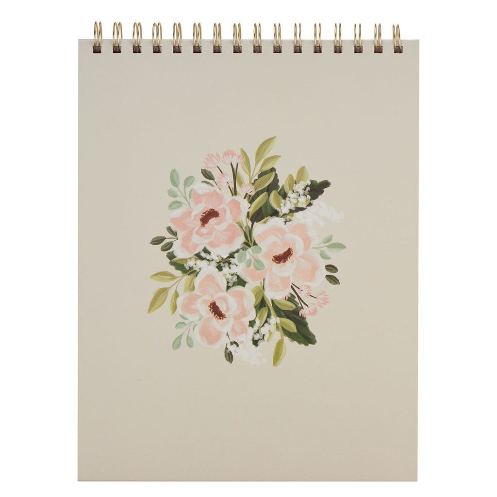 A stunning floral arrangement mirroring the front cover adorns the back cover. Gold wire binding binds the notepad together, makes it easy to flip through and perfect for quickly jotting down notes.